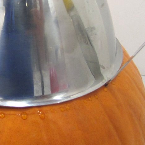 As you can see, a fresh pumpkin often sweats out moisture when the outer peal is cut.