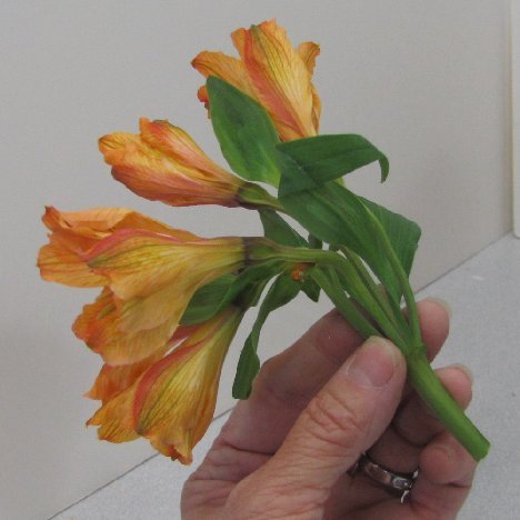 Again, the natural curve of the alstroemeria is utilized and the flower heads are facing outwards from a side view.