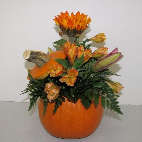 I used the previous stem of alstroemeria as a massed flower in my fall table pumpkin centerpiece, and I'm going to do it again with this second stem.