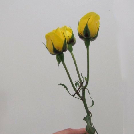 I only had one stem of spray roses in a bright yellow in this fall mix of flowers. I'm going to keep the impact of color by placing this as one flower in the center of the design rather than cutting them apart.