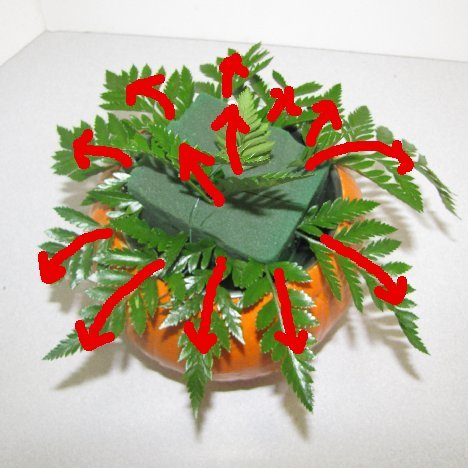 Don't hesitate to cut some of your longer pieces of fern into smaller pieces. You'll never notice it once the arrangement is filled in completely.