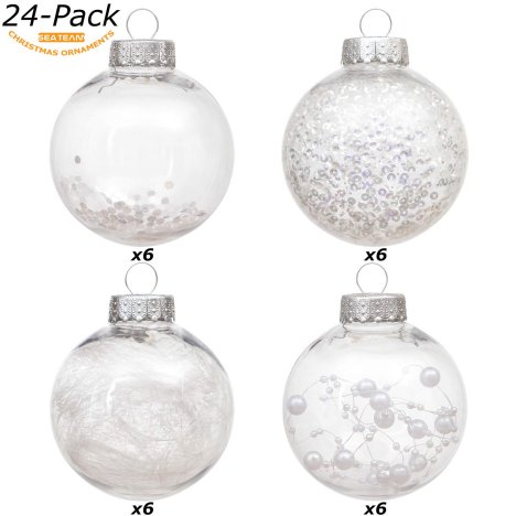 The ornaments are decorated with frosted designs overlaid on the balls.