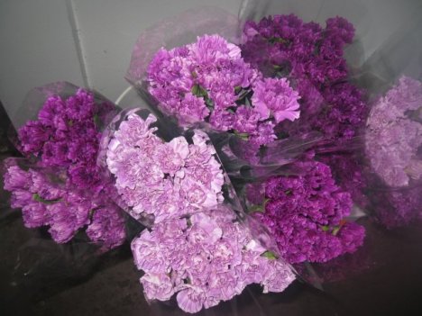 For this tutorial I simply used varied shades of purple and lavender carnations. If you'd like even more interest, add in spray miniature carnations available in the same purple and lavender shades.