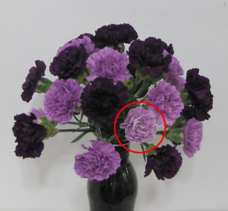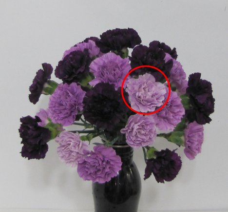 I distributed the pale lavender carnations all around the bouquet.