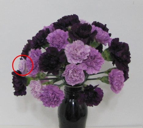 I then inserted pale lavender carnations between the flowers already in place.