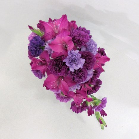 An alternate look to the teardrop bouquet is skipping the white and inserting different shades and hues of purple. FLORIGENE growers are well known in the flower industry for breeding a delightful range of carnations from the palest lavender to a dark midnight purple.