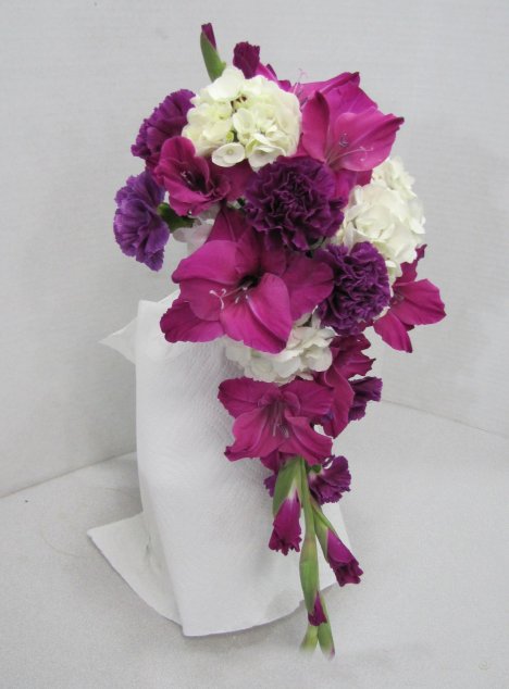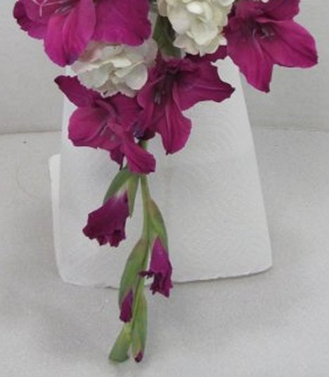 Although the gladiolus makes a long line for the cascade with a single insertion, it still needs to be more filled out by adding more flowers.