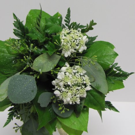 As you can see, it takes less flowers to create a lovely design when using decorative greenery.