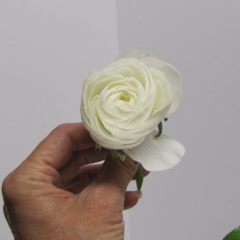 My first ranunculus is inserted into the top, facing upwards. Notice how it is angled in the opposite direction of the flower below it.
