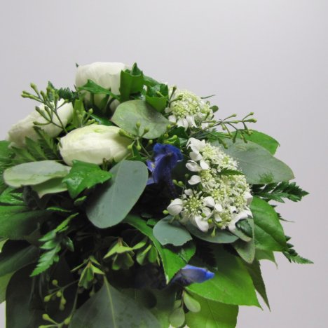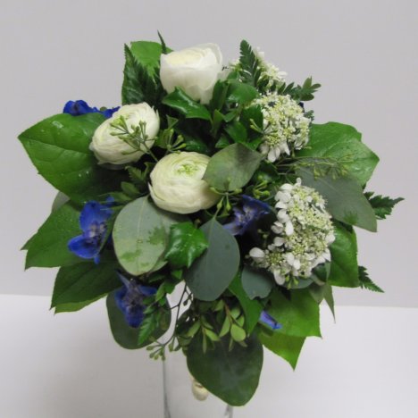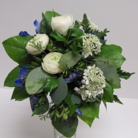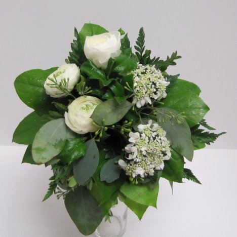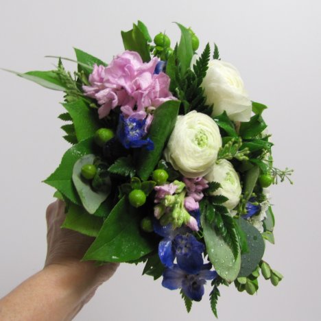 The ranunculus bridal bouquet should look good from all angles, including both the left and right sides. If every flower faced forward, you will get a very flat look, rather than natural curved look. This is important, because your guests are usually seeing the bouquet from the side view rather than front.