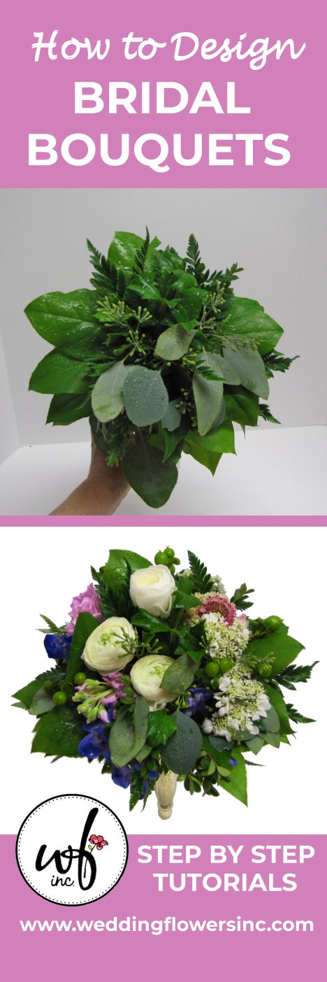 Work your way upward, tilting the leaves upward as you get closer to the center. This ranunculus wedding bouquet will have a framework leaves to help fill out the design.