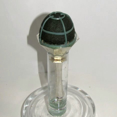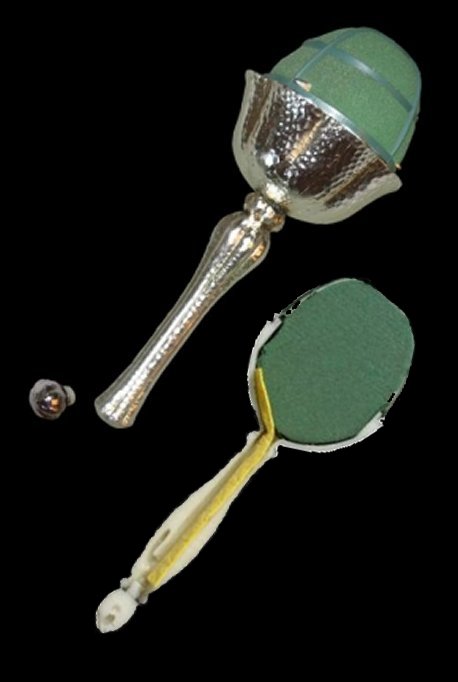 A view from the cutout shows that the hollow handle houses a wicking material that allows you to unscrew the cap on the bottom. Place the flowered holder into a vase and it will draw up water, keeping the foam head wet and not requiring you to rewet numerous times before the wedding day.