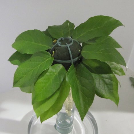 The leaves can be trimmed down shorter for insertions in the bouquet foam. The leaves naturally twist on the natural stem, so you can control showing of the top side of the leaf by using a simple stapler if needed.