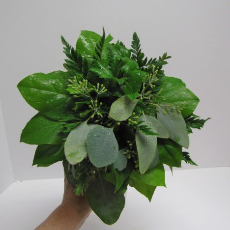 The key to interesting designs is to mix in different flower and greenery with different looks and textures. Leather leaf fern is very affordable and one bunch can generally do 4 - 5 bouquets.