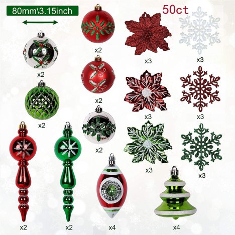 This red green and white christmas tree ornaments are a part of the Splendor collection.