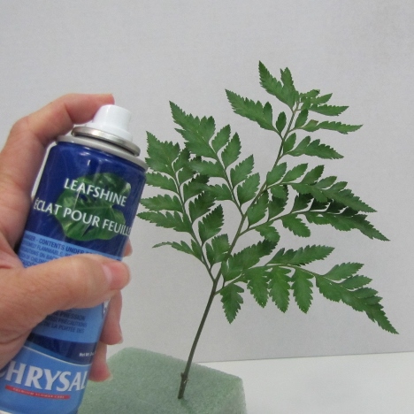 Leafshine is a product florists use to clean up the greenery. It is meant for greens only. Do not spray it on fresh flowers. It will clean your greens and give them a glossy polish look, removing the splotchy hard water stains as well as dirt and residue from pollen and dirt from the fields.