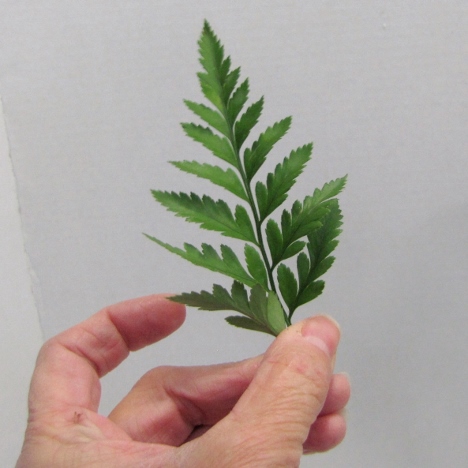 A leaf "frond" is a part of an entire leaf, such as the leather leaf frond shown below. I cut these off the main stem with a knife. It gives me a clean, sharp edge that pokes cleanly into florist foam.