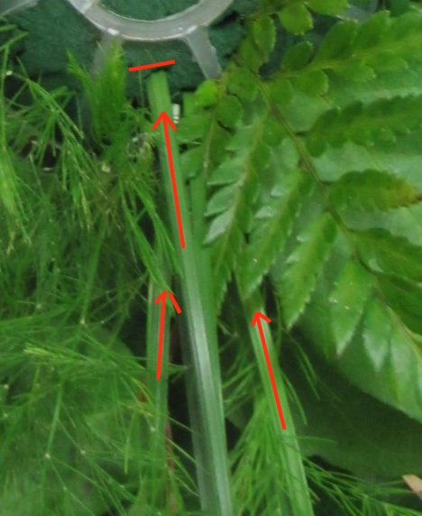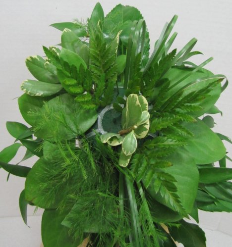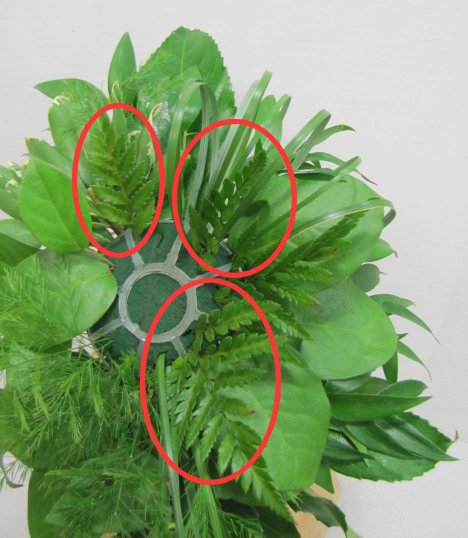 I always order several bunches of leather leaf fern. It's cheap and a great filler if you run short of greens. Notice how these short fern laterals are standing almost straight up.