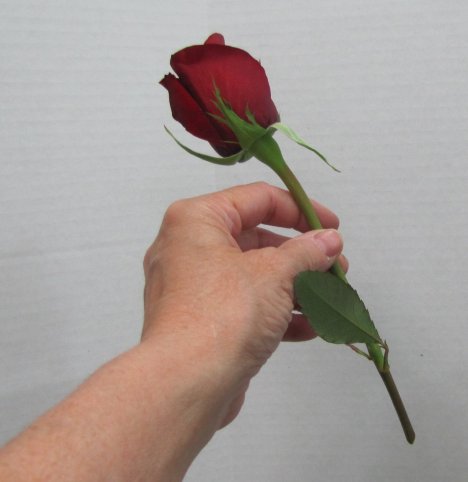 I started my first rose insertion at the top. The flower is almost straight up and down, the tilted slightly towards the back.