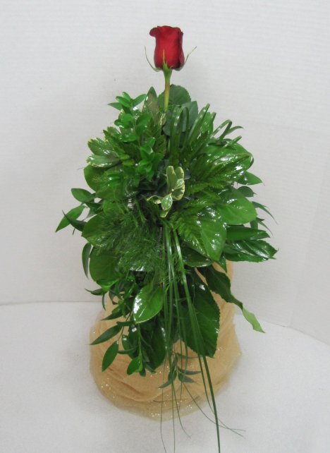 This red rose wedding bouquet is going to have a long cascade. I'm leaving a much longer stem on the rose than I did in my previous (tighter) rose bouquet cascade designs.
