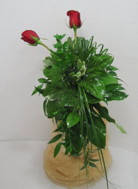 Now I insert another rose, approximately 45 degree angle to the first rose - again tilting slightly towards the back.