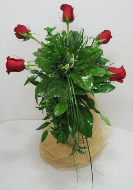 The length of the rose stems will determine the final size of the finished bouquet. If you want a larger bouquet, cut the stems longer. If you want a smaller, tighter bouquet, shorten the stems.