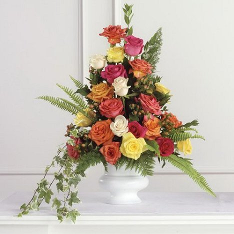 Rose altar decorations can be made in most any color or shade to match your own wedding palette. To create a similar look, you need the following products and fresh flowers: