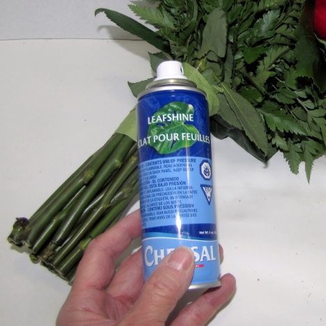 Before covering the handle, I want to spray the underside leaves with the leaf polish in order to seal them and lock in moisture.  The leaves will last longer this way.