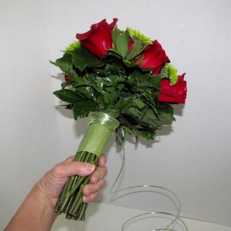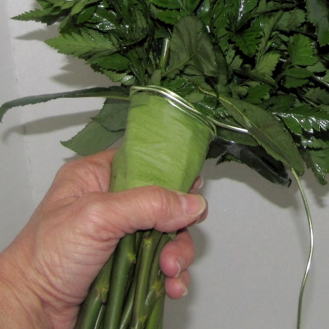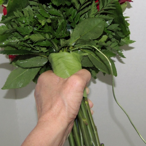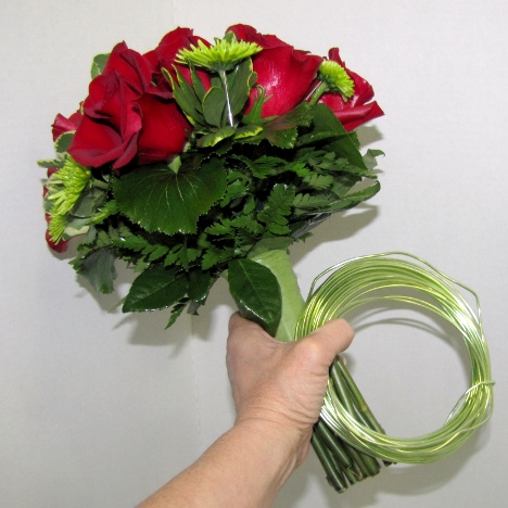 You soon get into a rhythm of working your way down the flower handle, rotating the bouquet as you wind the wire.