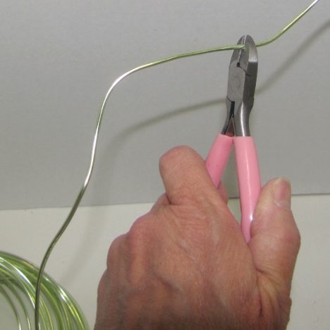 The soft aluminum wire cuts easily with wire cutters and bends into shape with your hands.