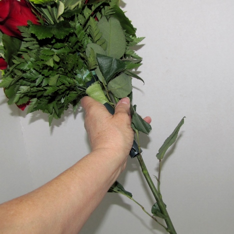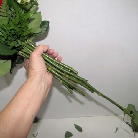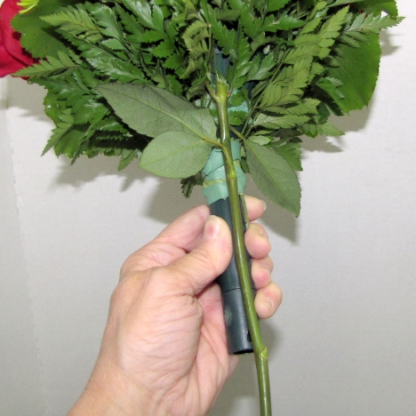 You can see that even short stemmed roses have pretty long stems and can probably be cut in half, giving you plenty of stems to conceal the handle with.