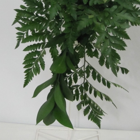 I first determine how long I want the ruscus to be by holding it up to the framework I created with leather leaf fern.