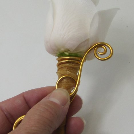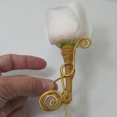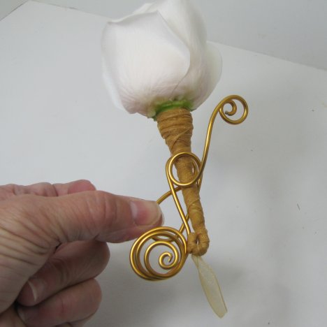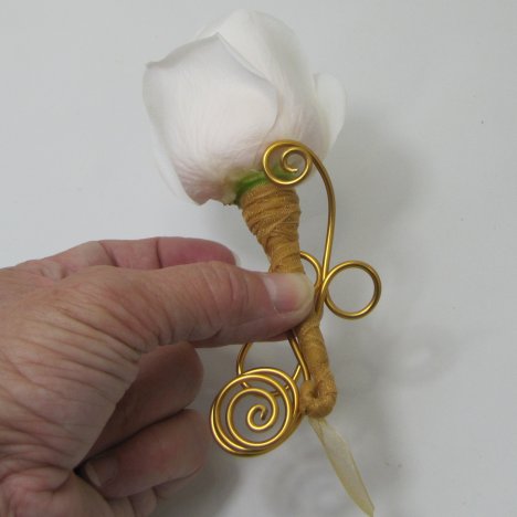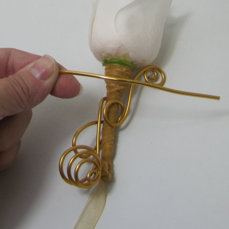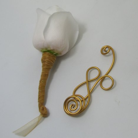 I like to make a wedding boutonniere special, with lots of attention to detailing. That's why using decorative wire is so much fun. This 12 gauge wire is extremely easy to manipulate into all sorts of interesting designs.