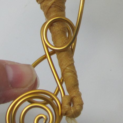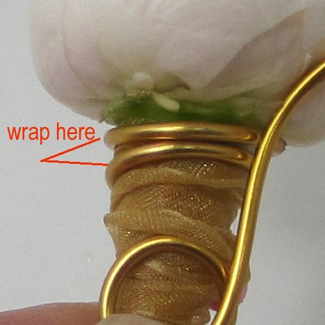 I'm going to cover the green part showing (the top part of the rose bulb/caylex) with a shorter piece of the gold decorative wire.
