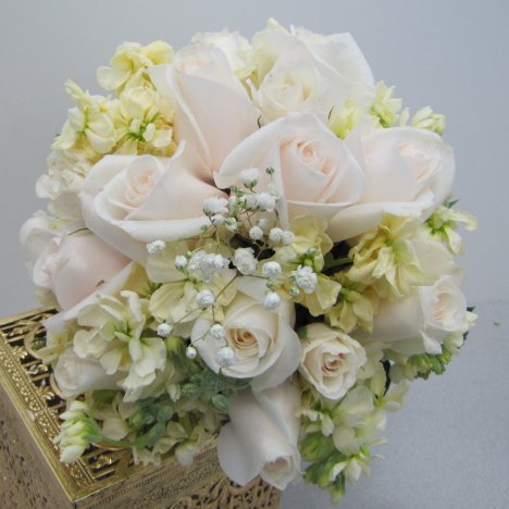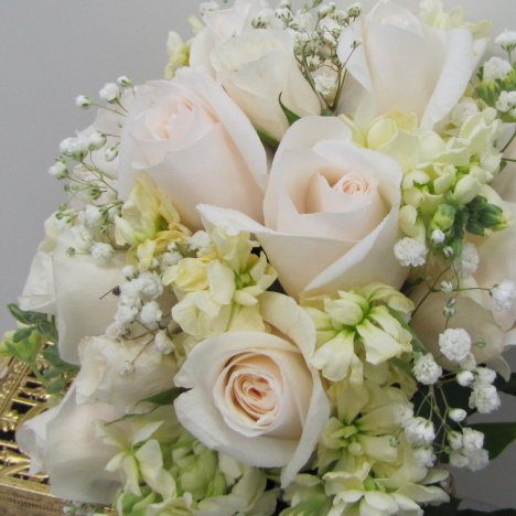 These rose wedding bouquets are going to be finishing by using Baby's Breath as a filler flower. This step is optional, because not all bride's like the look of Baby's Breath. You can use other fillers like Monte Casino aster, limonium or Wax Flower.