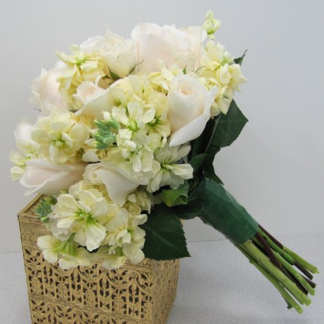 These rose wedding bouquets are now taking on a very nice rounded design with tightly bound stems.