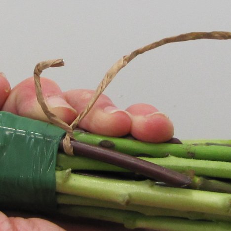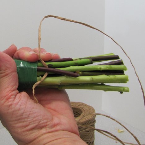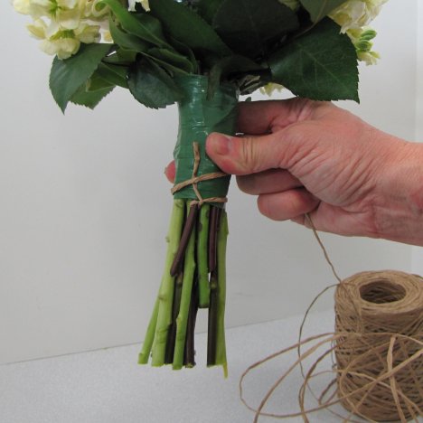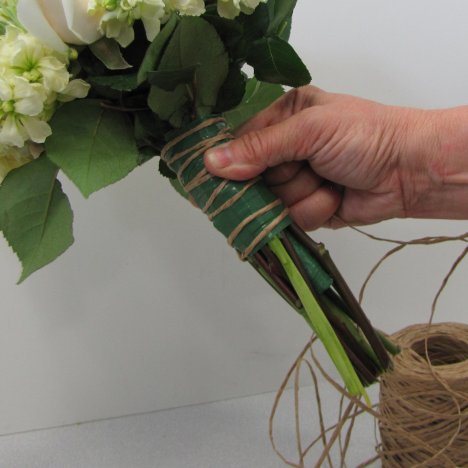 I wrap the wire around the bouquet handle, working my way upward to cover the cut end of the BindWire.