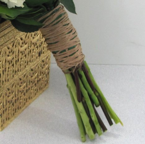 The bride was going for a rustic look, so I suggested we use paper covered Bind Wire as a bouquet handle finish.