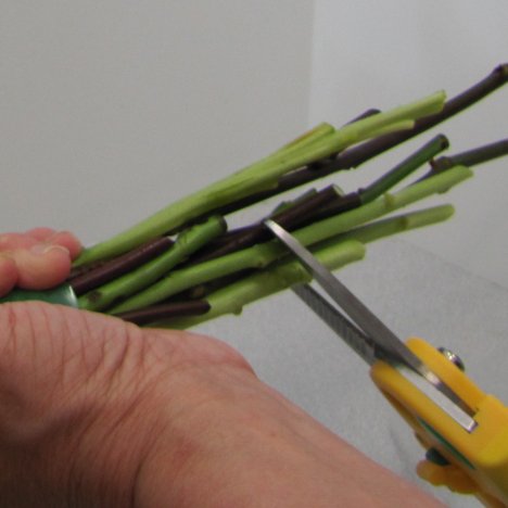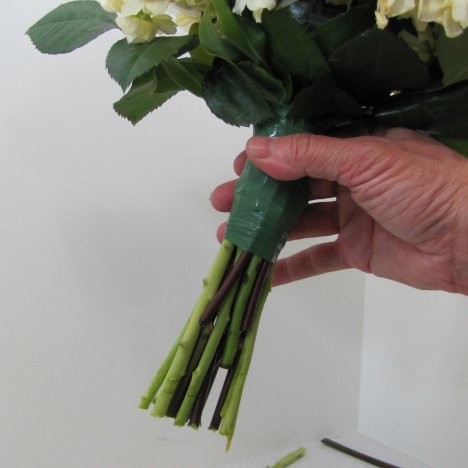 The rose wedding bouquets will look more uniform if you cut your stems off evenly with bunch cutters or a knife.