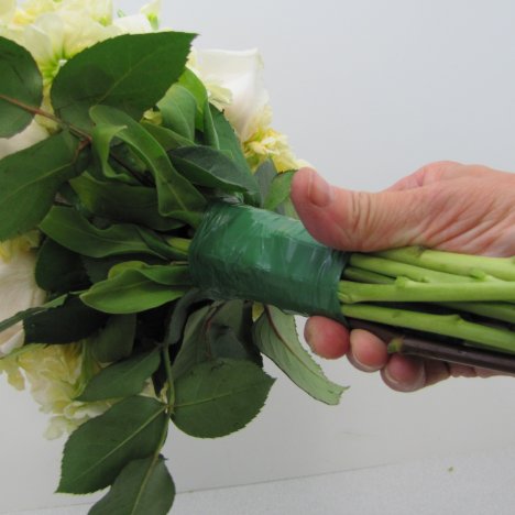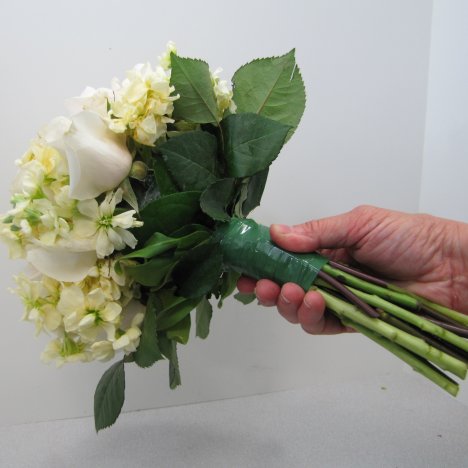 At this point, no one will realize that this bouquet is created on a holder rather than as a traditional hand tied bouquet.