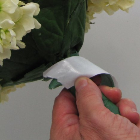 Place the end of the roll of floral clay to the top of the bouquet holder handle.
