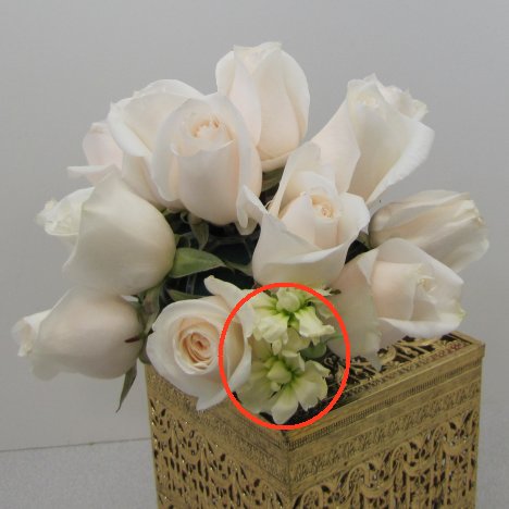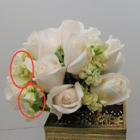 Rose wedding bouquets take on a decided interest when I add a contrasting color. Stock is available in both single stems (heavier and larger blooms) and spray stock (smaller laterals coming off a main stem). This flower has a heavenly spicy scent and is reminiscent of hydrangeas once in a bouquet. It is much hardier than hydrangeas and doesn't wilt as easily.