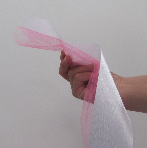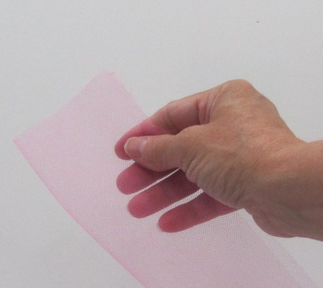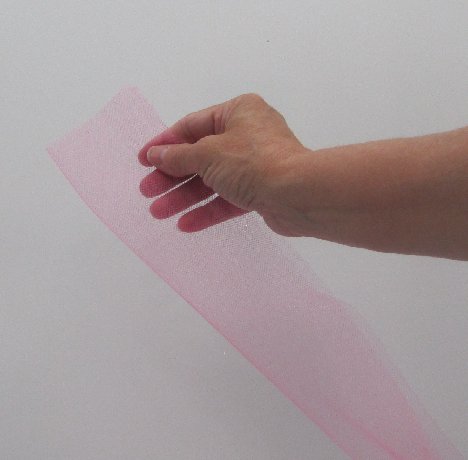I do the same for the tulle. This is, however, twice the width of the satin ribbon, so I fold it in half.