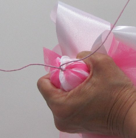 The result will be a very tight wire that keeps each ribbon and tulle loop firmly in place.