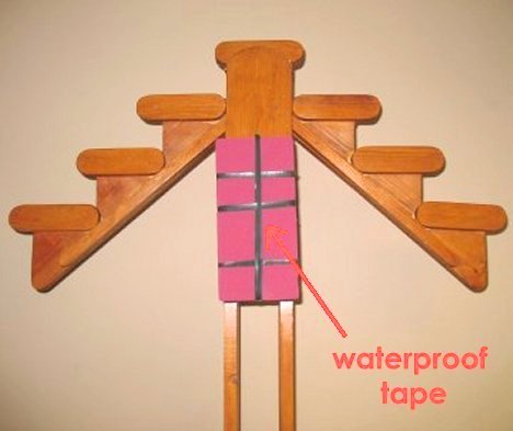 The first step is to attach your block of foam or floral cage to the candelabra. I used waterproof tape since these candelabras are mine. Rental companies may not allow tape, so you can use floral wire instead.
