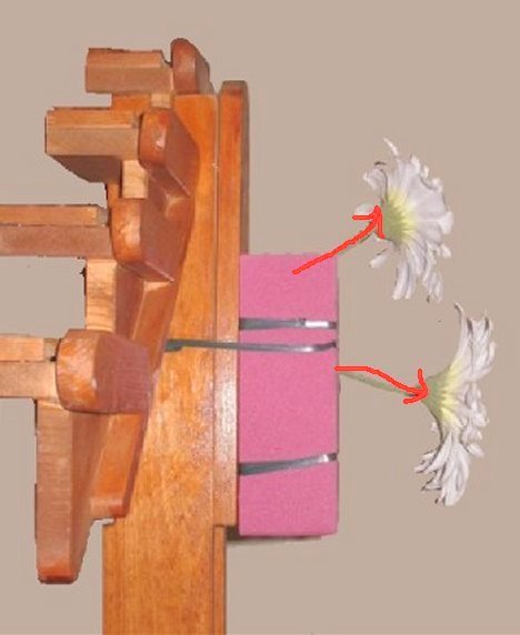 Note how these flower heads come out a couple of inches away from the foam. This helps give depth perception to the arrangement.