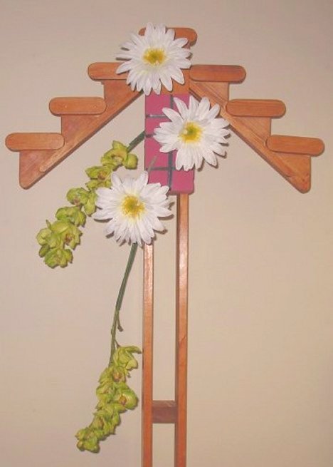 The church flower decoration shown below was created in silk for a bride that purchased her own silk flowers. The design principals are the same, however, when using fresh flowers.