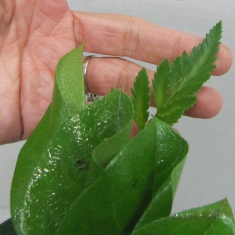 I want the laterals of the leather long enough to show, giving a decided texture contrast to the broad lemon leaf.