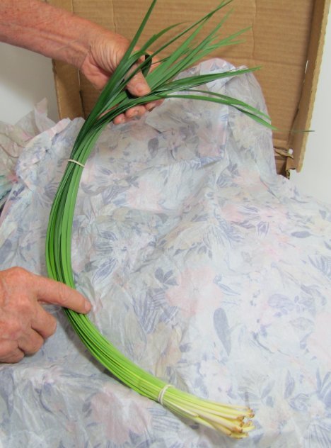 Lily grass is firm enough to insert the clean cut tips into the foam, yet flexible enough to bend into loops without breaking the grass stem.