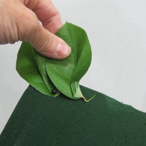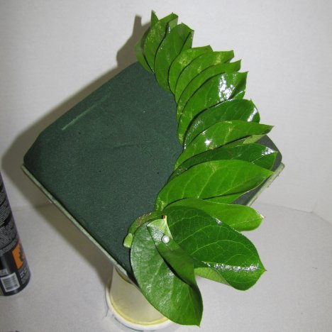 I find this much easier than trying to glue the leaves into place with floral adhesive.